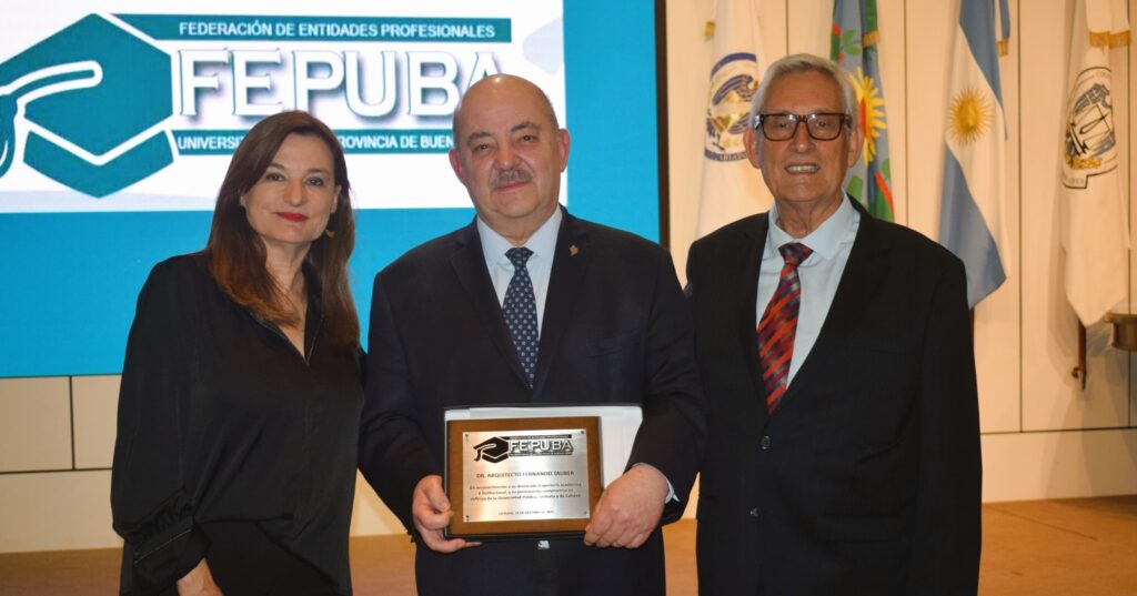 Durante el encuentro, FEPUBA entregó un reconocimiento al Dr. Fernando Tauber, vicepresidente de la UNLP, por su destacada trayectoria académica e institucional y su compromiso con la educación pública, gratuita y de calidad.